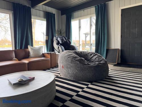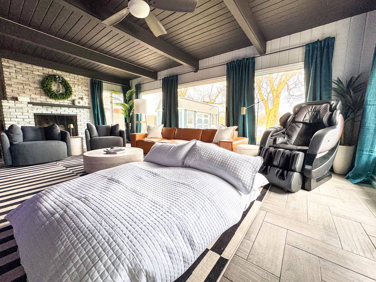 Stunning river views set the relaxing tone as you walk in 🏡 💆🏻Rejuvenate w/ a heated massage chair 🕹️Nostalgic fun w/ classic arcade games 🛏️ King bed in each bedroom for ultimate comfort 🍳 Fully equipped kitchen for home cooked meals 🛜 Fast wifi for remote work 🌸6mins-Anderson Japanese Gardens 🍎28mins-Edwards Apple Orchard 🍻7mins-downtown Rockford 🚴♀️ 15mins-Rock Cut State Park ✈️12 mins-RFD Int'l Airport This escape offers the perfect blend of relaxation & adventure🏖️