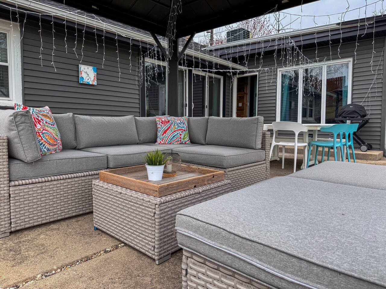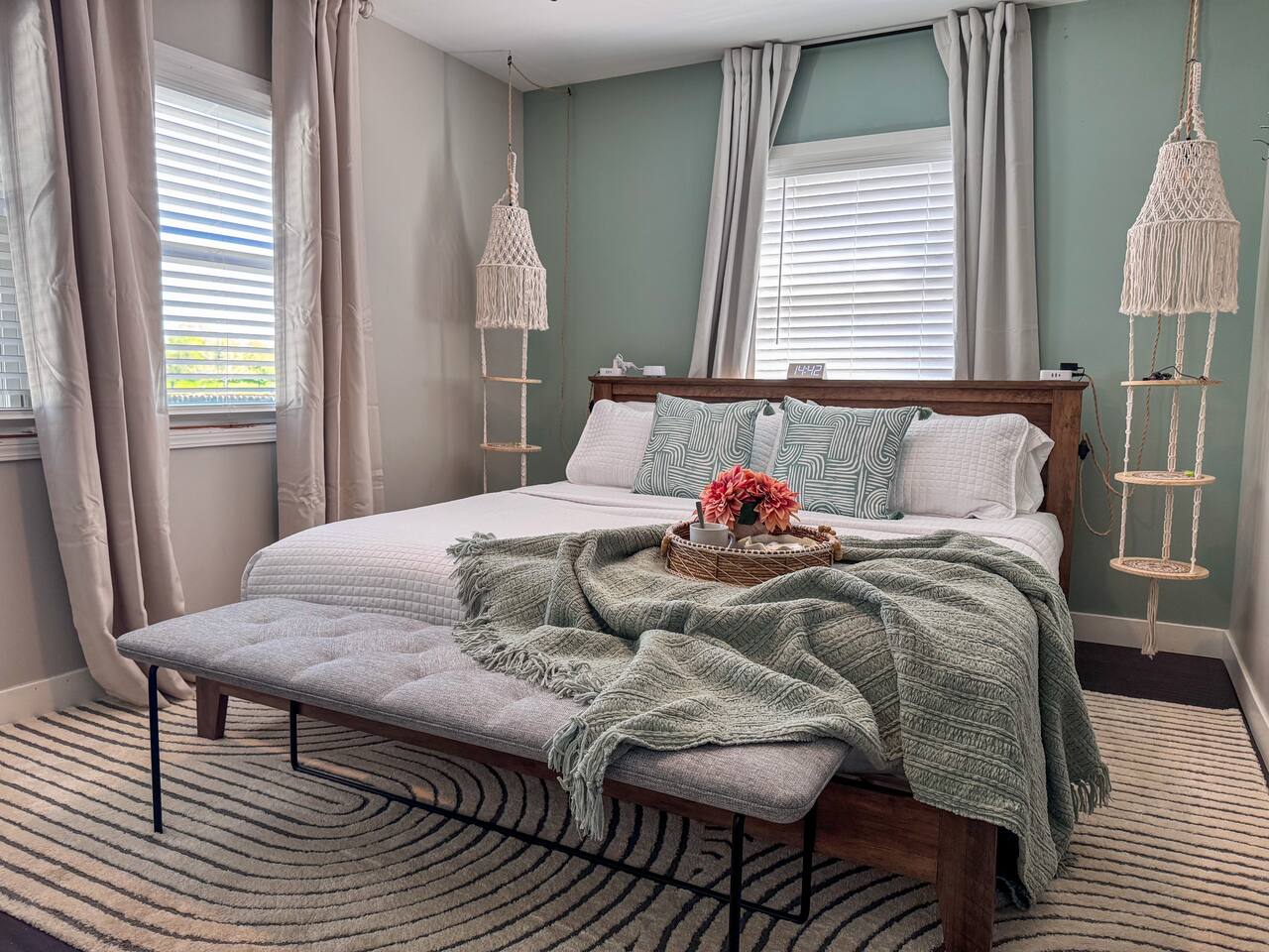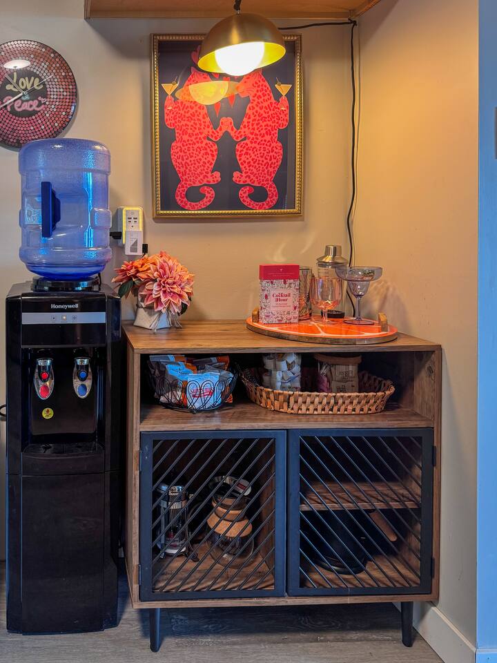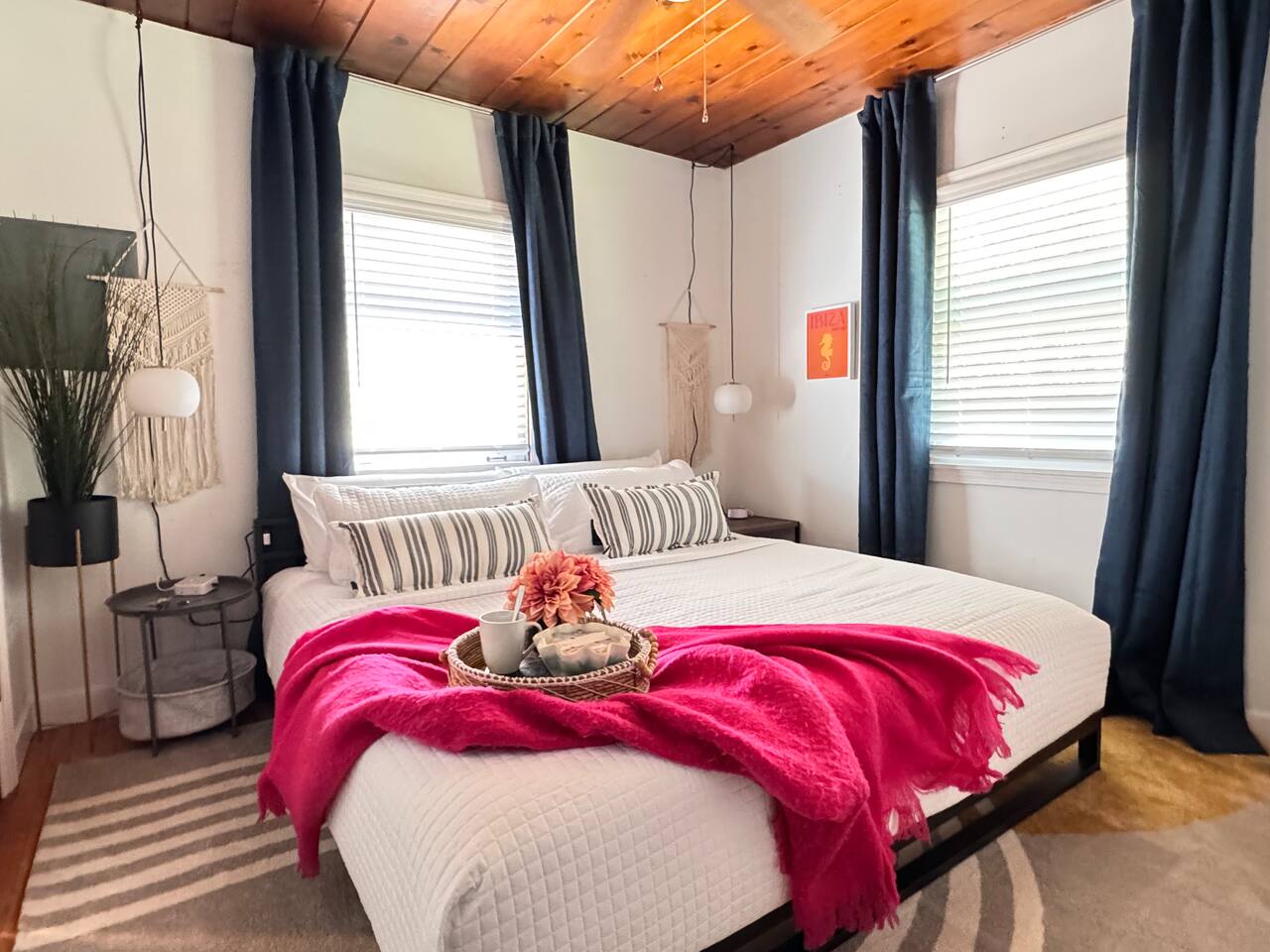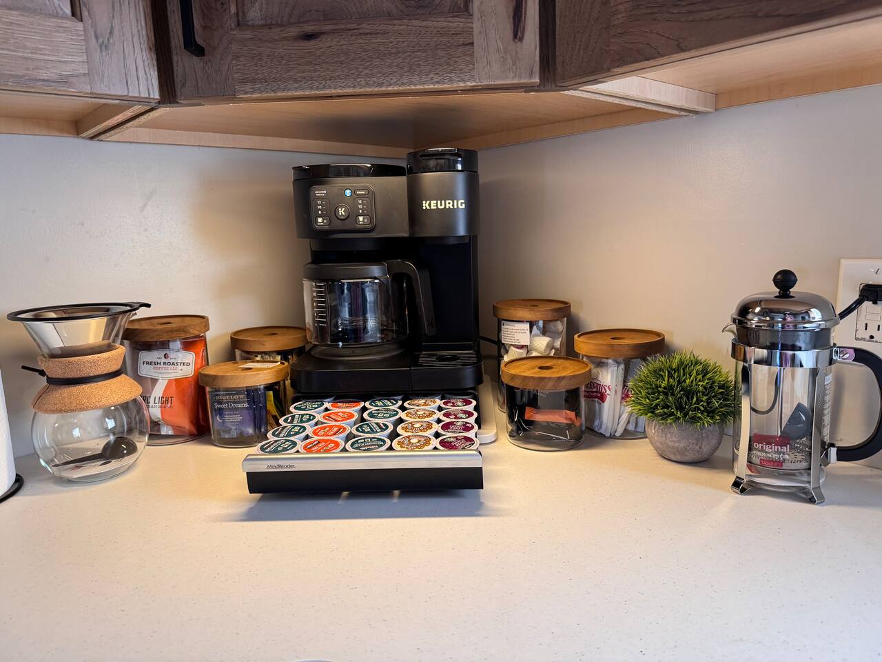 🛋️ Living Room ✓75 inch TV (bring your own log-ins to stream your favorite shows) ✓Vegan Leather Couch ✓2 Boucle Swivel Chairs ✓Cordaroy Bean bag (converts to a Queen Sized bed) ✓ Heated Massage Chair with Bluetooth Speakers ✓Arcade with 3,000 games to choose from ✓Wood burning fireplace 🥘 Dining Room ✓Dining table with 6 chairs ✓Piano / Keyboard 🖥️ Workspace ✓Apple desktop (Safari access only) ✓Canon Inkjet Printer (Wireless / wired) 🧑🍳 Kitchen ✓Coffee Station (Drip coffee maker, Keurig, Pour over, French Press) ✓Regular & decaf coffee: K-cups, individual coffee grounds ✓Tea ✓Sugar / sugar substitutes & Creamer / Honey ✓Toaster ✓Air Fryer ✓Blender ✓Pressure cooker ✓Indoor Grill ✓Food dehydrator ✓Dinnerware & Silverware ✓***👶Kid’s Dinnerware & Silverware ✓*** 👶 High chair with tray ✓ ***🐾 dog bowls, adjustable dog feeding station 🧺 Laundry ✓Washer ✓Dryer ✓Iron / Steamer 🛏️ Bedroom 1 ✓King Bed with Memory Foam Mattress ✓Soft Down Alternative FIll Mattress Topper ✓Linens / Sheets ✓Alarm Clock ✓White Noise Machine ✓Air Purifier ✓Luggage Rack ✓ *** 👶 Pack n Play with mattress & sheets 🛏️ Bedroom 2 ✓King Bed with Memory Foam Mattress ✓Soft Down Alternative FIll Mattress Topper ✓Linens / Sheets ✓Alarm Clock ✓White Noise Machine ✓Air Purifier ✓Luggage Rack 🚿 Bathroom ✓6 inch rain shower head ✓Bidet ✓Towels ✓Shampoo, Conditioner, Body Wash, Lotion ✓ *** 👶 infant bath seat 🏝️ Outdoor ✓Giant Jenga ✓Cornhole/ Bean bag toss ✓Telescope for stargazing ✓Dining table with chairs ✓Sectional couch under covered pergola ✓Adirondack chairs ✓Ninja Electric Grill ✓Standard Firepit ✓Smokeless Firepit ✓Wood logs ✓***🐾 Poop bags / trash station